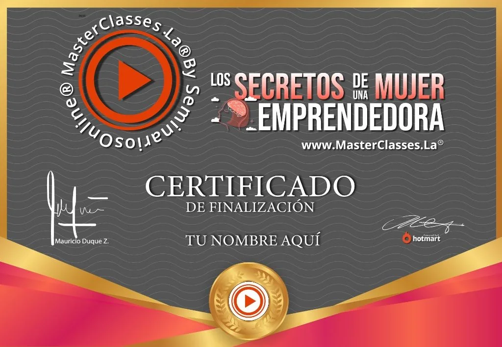 ¡Descubre los secretos para convertirte en una mujer emprendedora exitosa! En el MasterClass «Los Secretos de la Mujer Emprendedora», aprenderás a sanar heridas emocionales, reprogramar tu mente y desarrollar tu inteligencia emocional. Aprende a reflejar tu esencia en tu emprendimiento y logra mejores resultados. Identifica los factores que han afectado tu esencia y aprende a sanarlos. Prepárate para vencer la batalla de tu mente y manifiesta tus resultados a través del invisible. ¡Obtén el certificado avalado por Hotmart y Seminarios Online! No te pierdas esta oportunidad de crecimiento personal y profesional. ¡Inscríbete ahora!