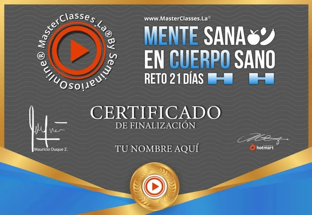 El MasterClass MENTE SANA EN CUERPO SANO te ayudará a lograr un cuerpo saludable y verte bien. Aprenderás a controlar los antojos y mejorar tus hábitos de sueño y alimentación. Obtendrás un «cuerpo de playa» todo el año, reducirás la grasa corporal, disminuirás el envejecimiento prematuro y mejorarás tu autoestima. Además, podrás perder hasta 5 kg de forma natural, reducir el riesgo de enfermedades degenerativas y ahorrar dinero en la despensa. A través de un reto de 21 días, basado en los pilares del fitness, lograrás pequeños cambios en tu estilo de vida que impactarán positivamente en tu bienestar. No te pierdas esta oportunidad de mejorar tu cuerpo y mente.